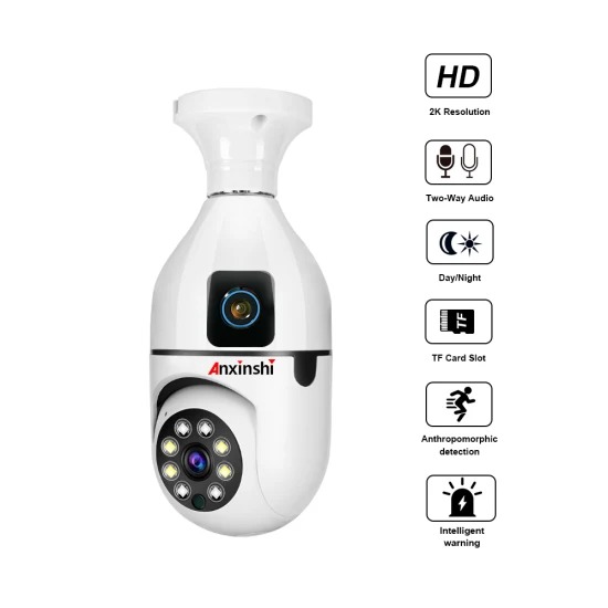 The Dual-Lens Smart Net PTZ Bulb Camera combines innovative design and advanced technology to deliver full-coverage security in a compact, easy-to-install form. Shaped like a standard light bulb, it fits into a regular E27 socket and offers pan-tilt-zoom control, dual-lens monitoring, and smart features for comprehensive home or office surveillance.